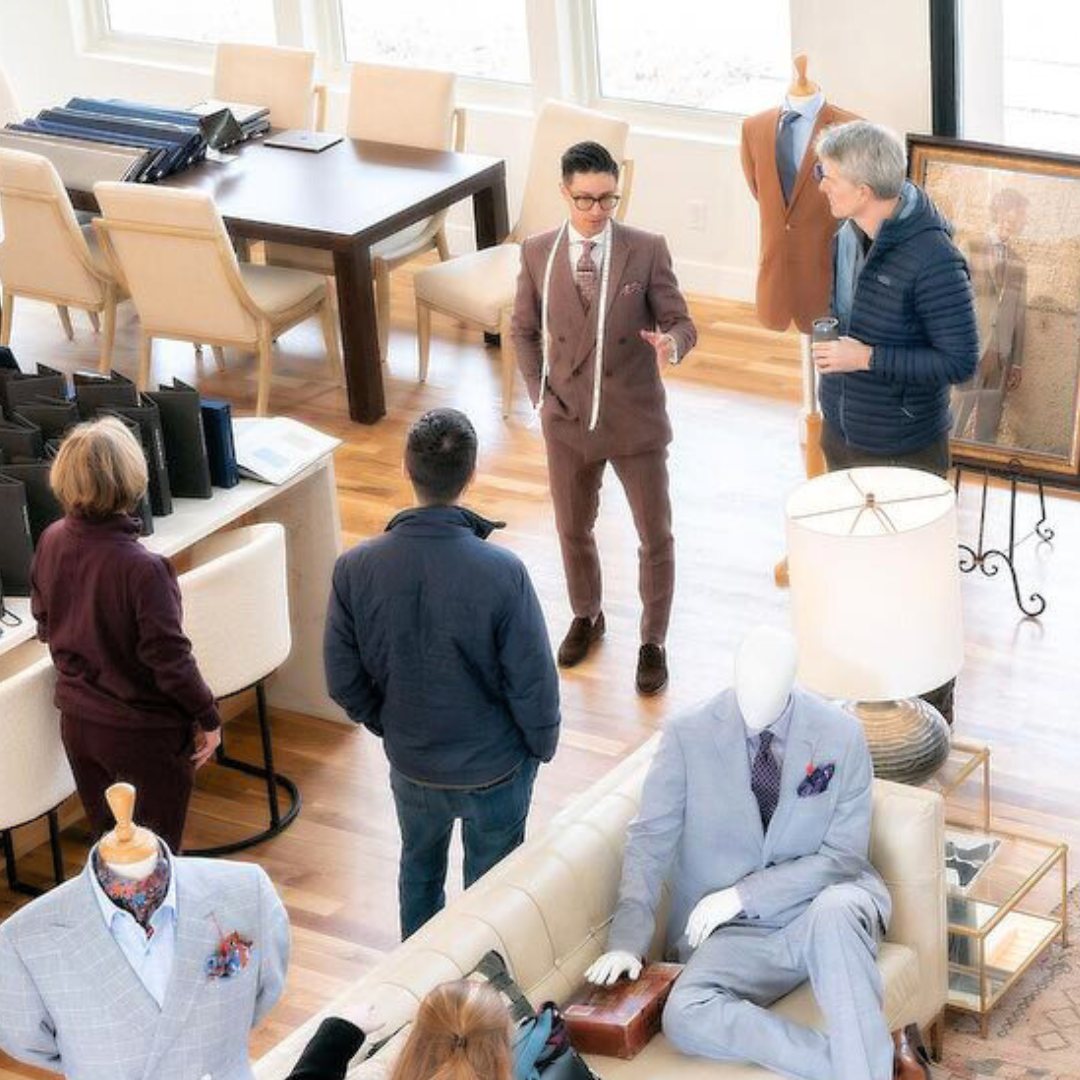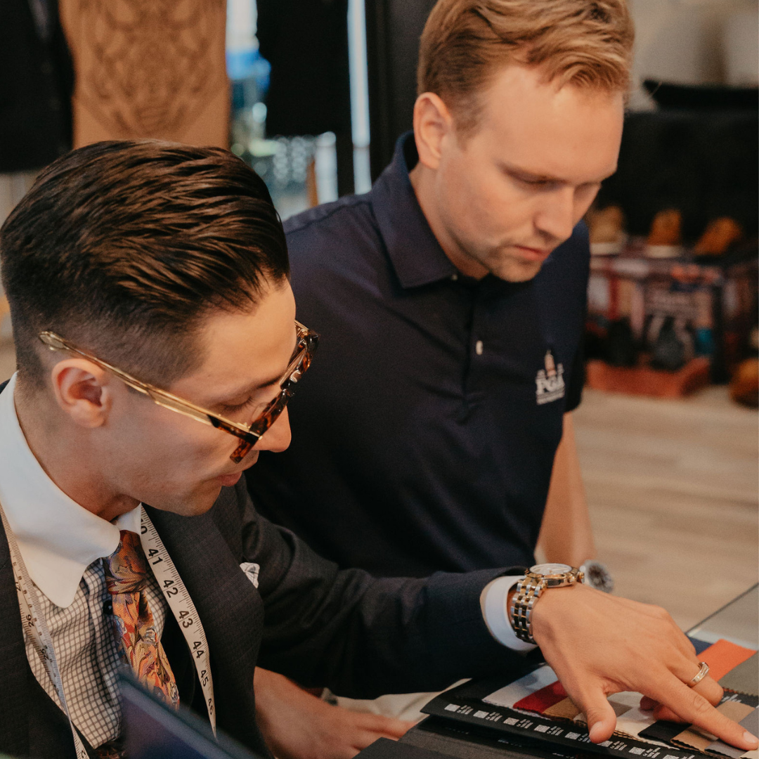 Elevate your formal attire with our custom service, where we guide you through our extensive selection of luxurious fabrics. Once we've identified your preferred style, we'll blend the needs of your event with the versatility of wearing your outfit post-event. By marrying these two aspects, we'll help you curate an exceptional ensemble designed to make you stand out at any gathering, be it a wedding, black tie event, gala, or more. Our aim is to craft an outfit that not only captures the essence of the occasion but also serves as a timeless addition to your wardrobe, offering endless possibilities for future events.